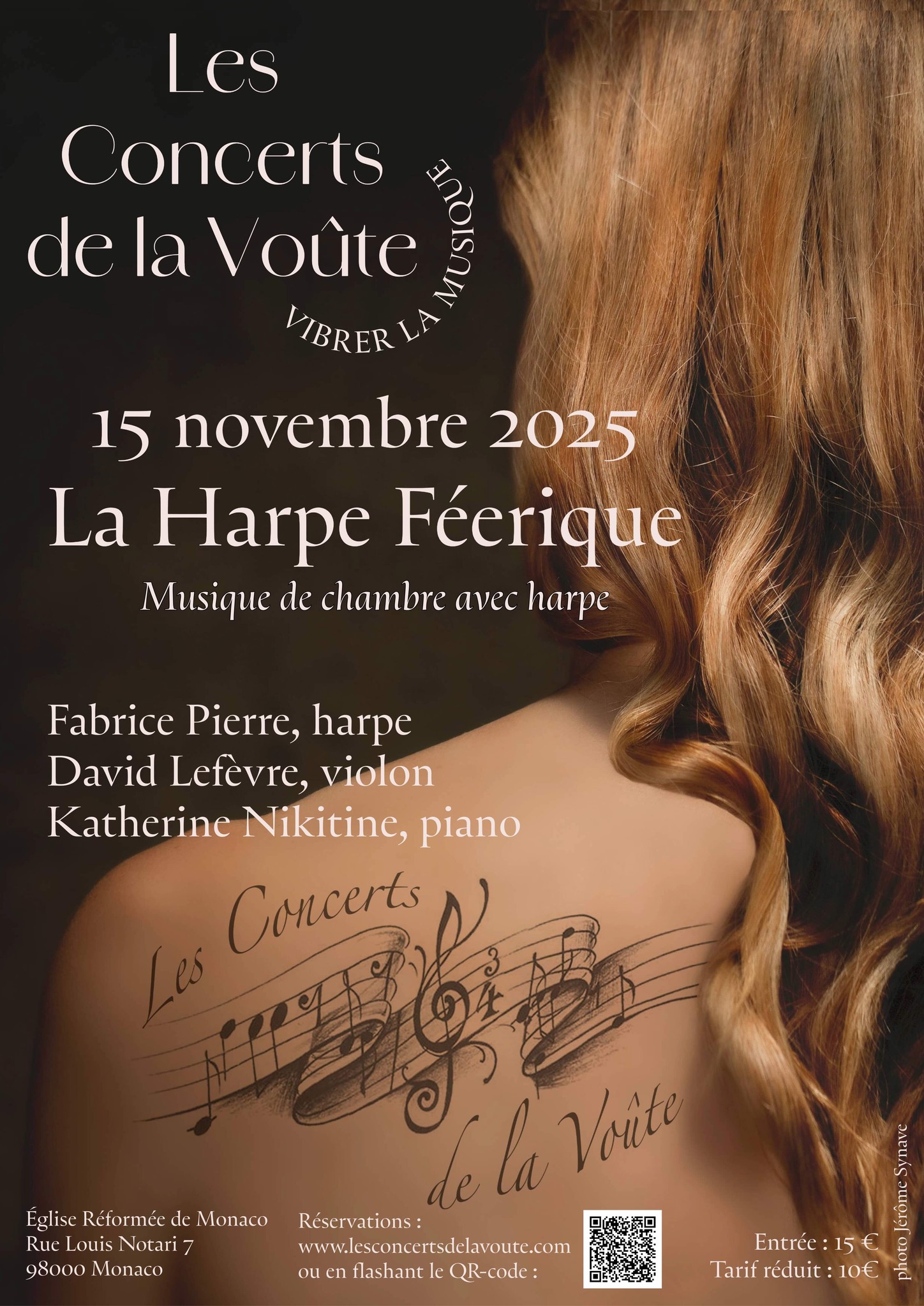 Concerts de la Voûte : samedi 15 novembre à 19h à Monaco : LA HARPE FEERIQUE