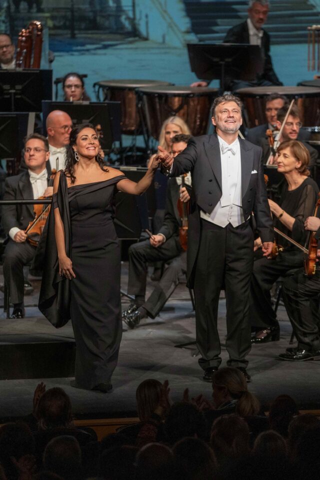 Comme pour Tosca, relatée précédemment dans nos colonnes, là encore et nonobstant la version de concert à laquelle on aurait pu s’attendre, il n’en est nullement question dans la mesure où de nombreuses projections en fond de scène – au demeurant de très grande qualité – viennent se substituer avec bonheur à des décors et que les deux artistes à savoir Jonas Kaufmann comme Valeria Sepe ne se trouvent pas contraints, comme dans les versions de concert traditionnelles, de river leur regard sur les partitions. En la circonstance pas de pupitres : les deux protagonistes peuvent donc librement, s’adonner au théâtre et il ne s’en privent point car on assiste véritablement à des airs et duos qui, dans leur exécution, n’ont rien à envier à une prestation scénique.