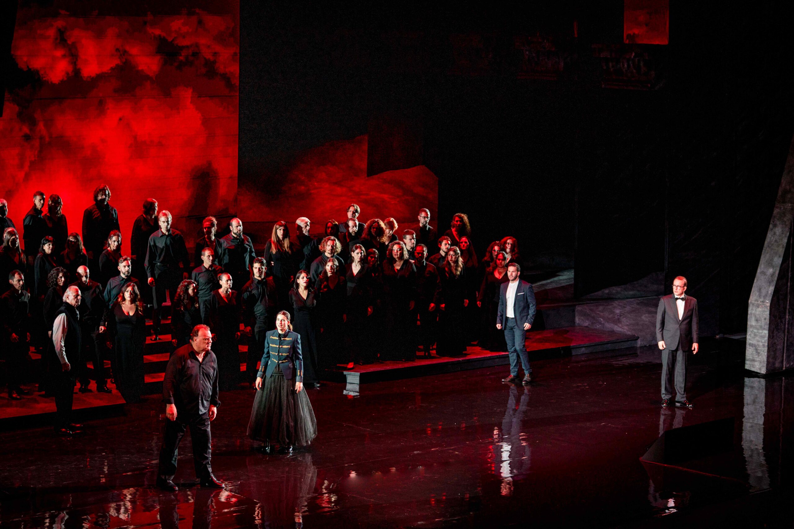 Pareille version « semi-scénique » nécessite un travail de trajectoires et de placements impliquant davantage de responsabilité pour les chanteurs pour conserver l’intelligibilité des rapports dramatiques et une utilisation du chœur comme masse mouvante et non comme simple arrière-plan pour éviter que le spectacle ne paraisse figé ou statique: