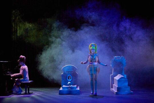 Valérie Lesort, artiste pluridisciplinaire présente sur tous les fronts, revient vers l’univers du cabaret auquel elle s’était déjà frottée en 2018 à l’Opéra-Comique (avec son spectacle intitulé Le cabaret horrifique).
